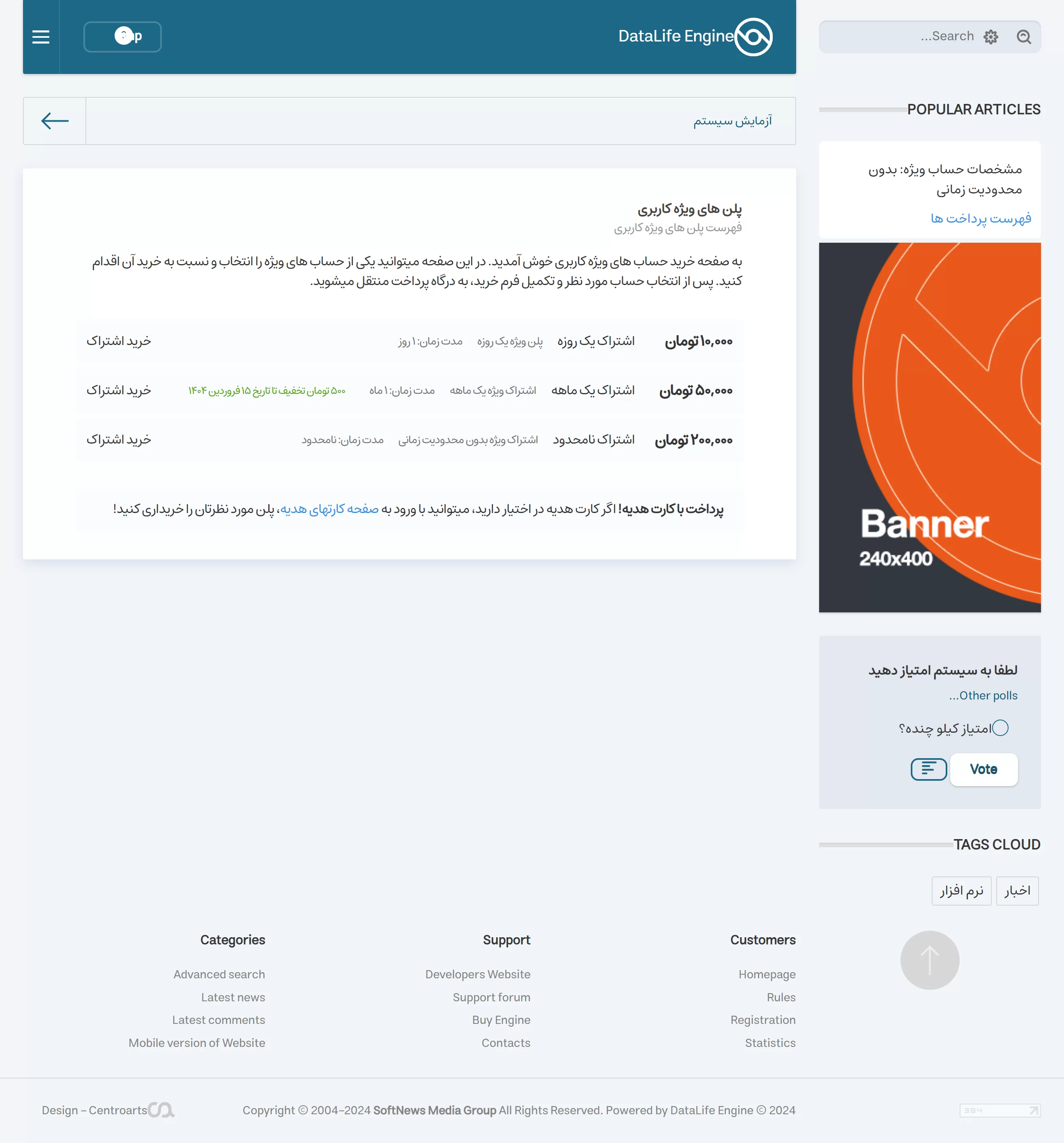 • قابلیت مشخص کردن زمان اشتراک در هر پلن به صورت روزانه، ماه، سال و یا نامحدود.